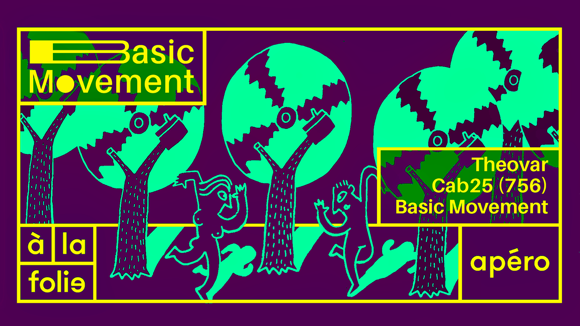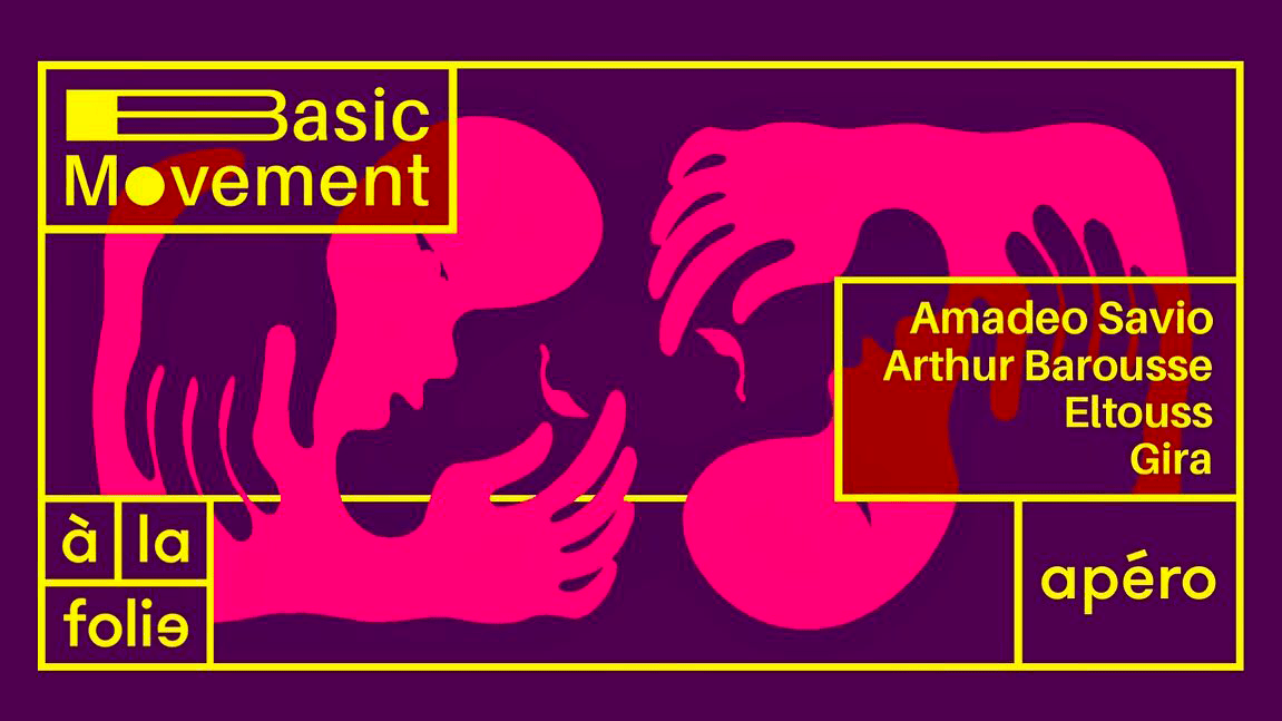 Visual identity and series of event flyers for Parisian music collectif Basic Movement. The identity is based on a typographic rework of the Aileron.
