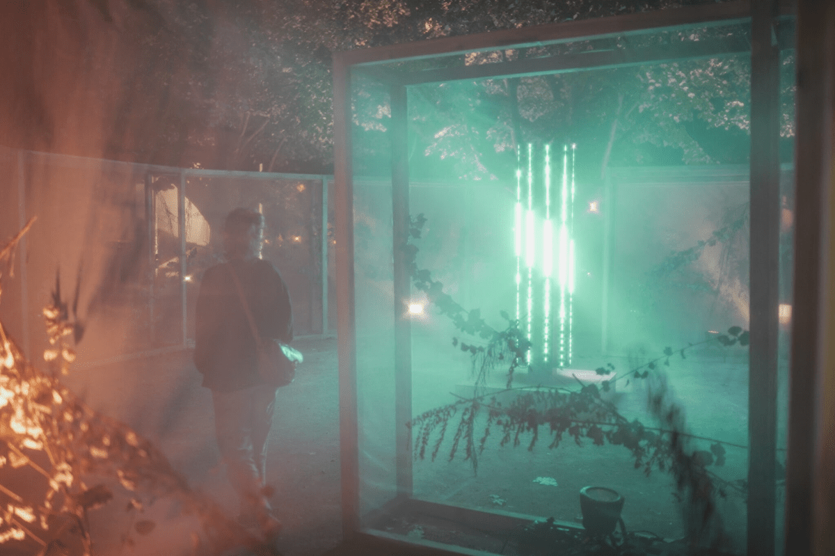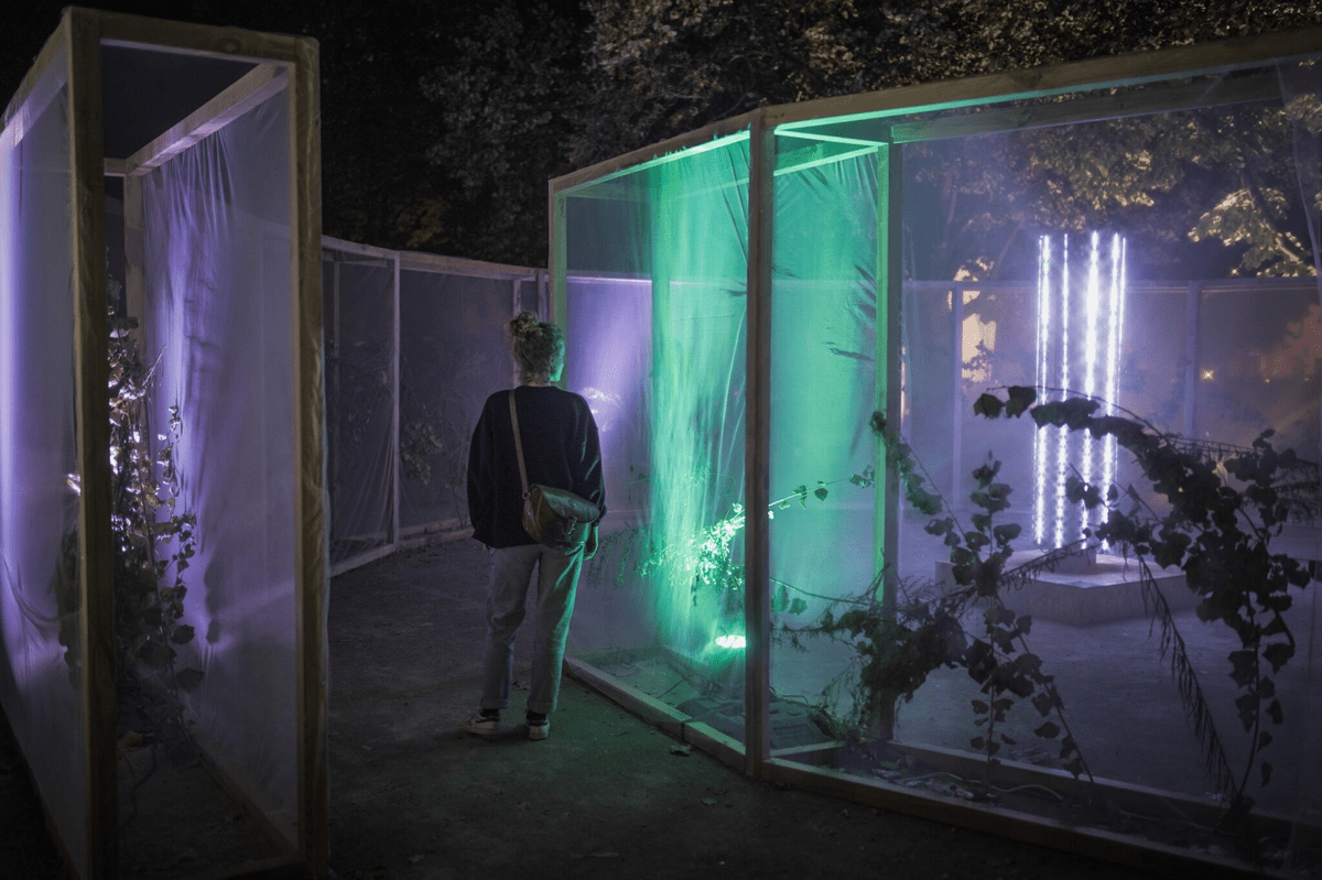 Art installation and sound design for Selest’art 2021. Brutaliste Brume invites the spectator to immerse themselves in a misty forest. This immersive installation dives the public into a peaceful universe, creating a mesmerizing break from the outdoor space. We designed a website playing the soundtrack for this project : see the project.